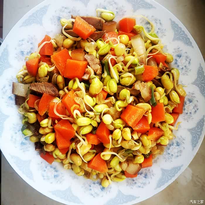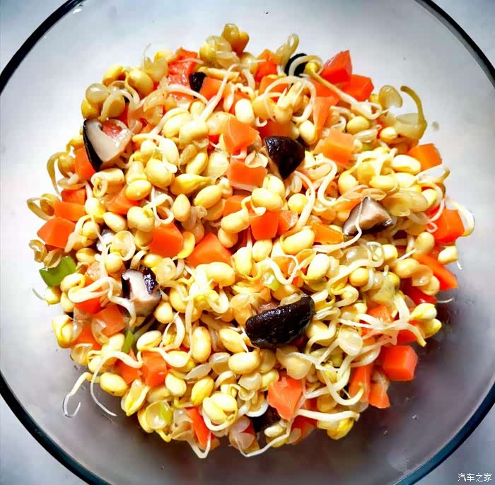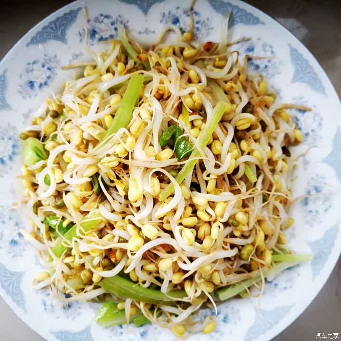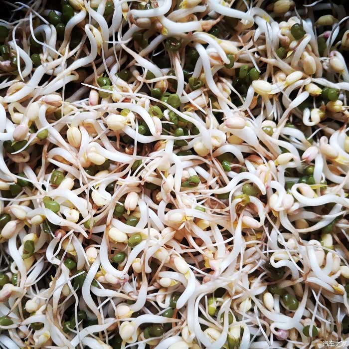 黄豆芽、绿豆芽交替生长,每隔4天吃一回,春天是个生发的季节,吃豆芽正合适。