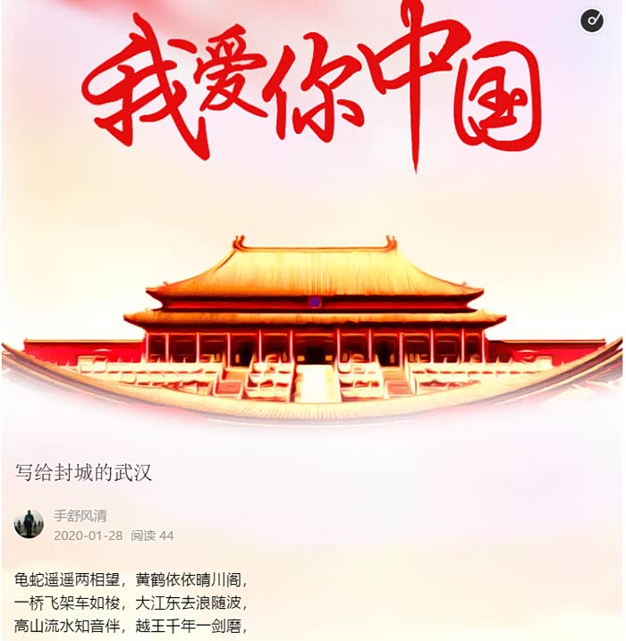 武汉的疫情牵动全国人民的心,九省通衢的大都市如今为了拯救全国在封城,点赞国家的执行力,点赞武汉人民的奉献!