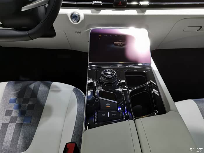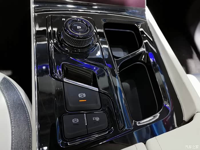 再来看看内饰,打开车门之后,给人的可以感觉就是科技与豪气。科技源于三块夸张的触控大屏,其中仪表台是两块连屏结构,将仪表和MP5大屏整合为一块,在中控台上一块控制空调等按键,整个车内的操控按键,除了换挡和电子手刹,其他按键基本上都被集成到触控大屏之中,豪气来自他的内饰布局和颜色搭配,给人一种豪车才有的气势。