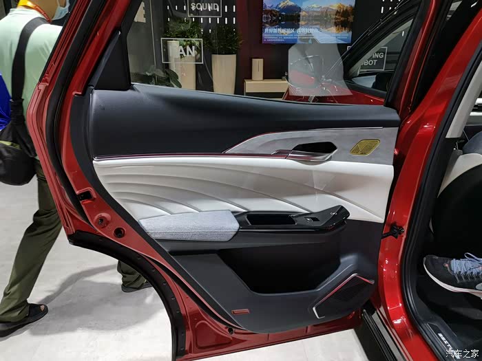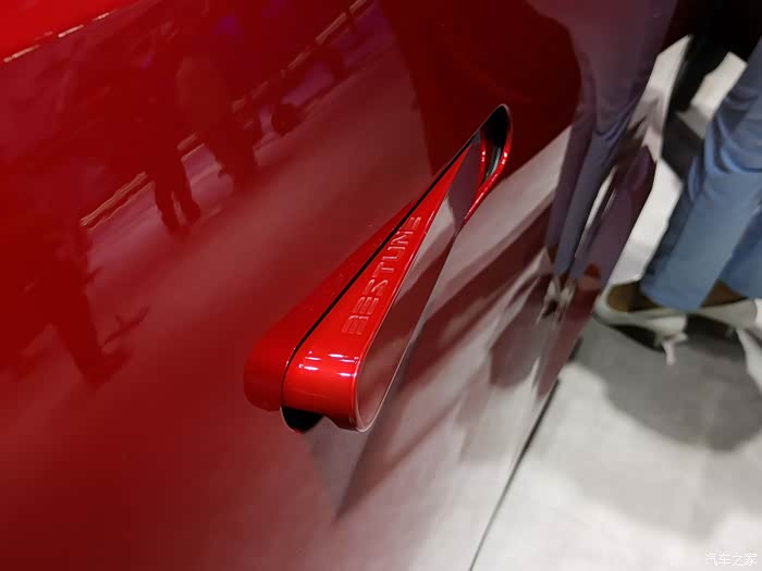 车门把手采用最近比较流行的隐藏式门把手这可能只有电动车才会有的豪气