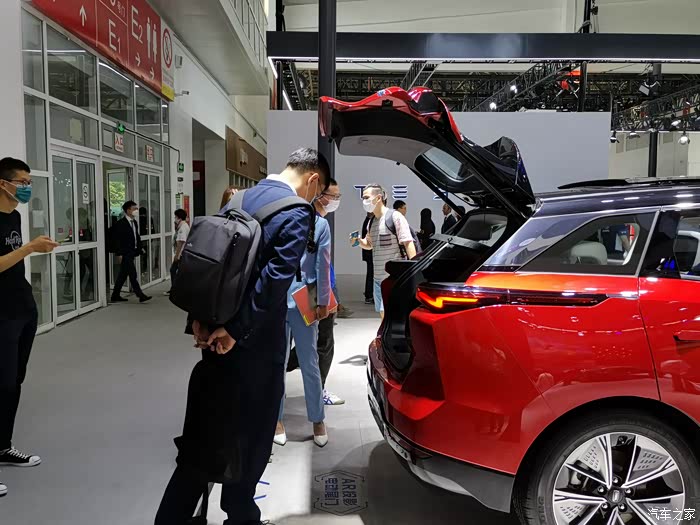 看完前脸再看看后尾部,因为人比较多,我只能先远远的看看尾门的开启高度,从图中这个人的身高来看,尾门的开启高度不算高,开关门应该比较方便