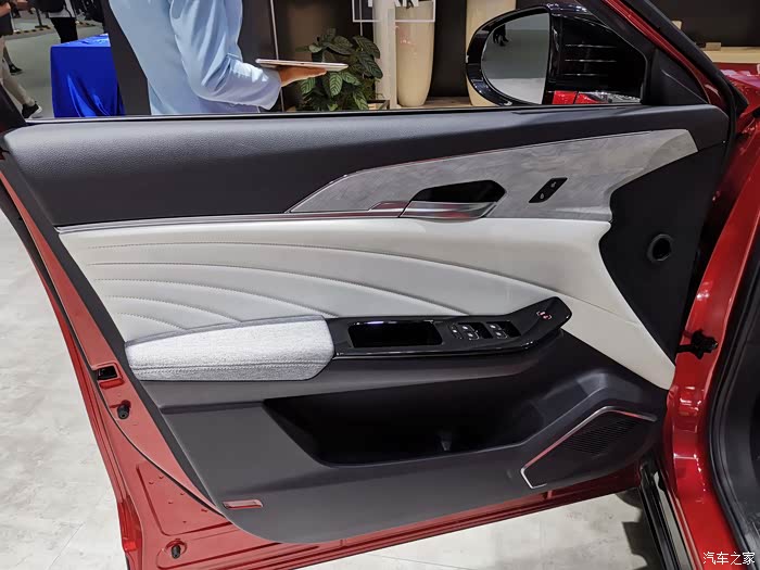 车门上面的软材质包覆,手感非常好,坐在这里很舒适,在内门板上有个JAMO标示,这个标示可是不简单的,他是丹麦的尊宝JAMO音响,坐在车里,就是一个移动的音悦舱。