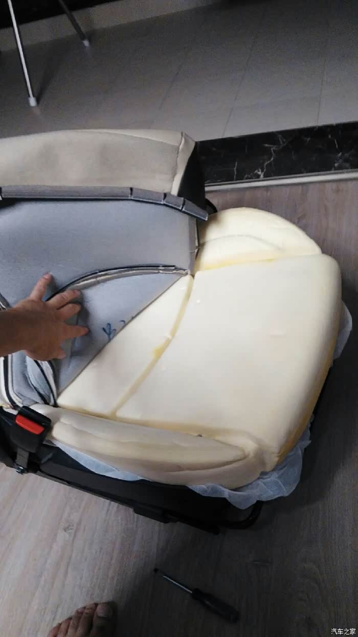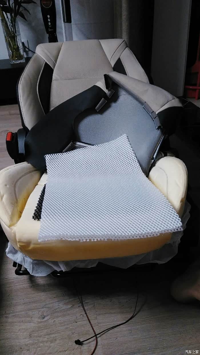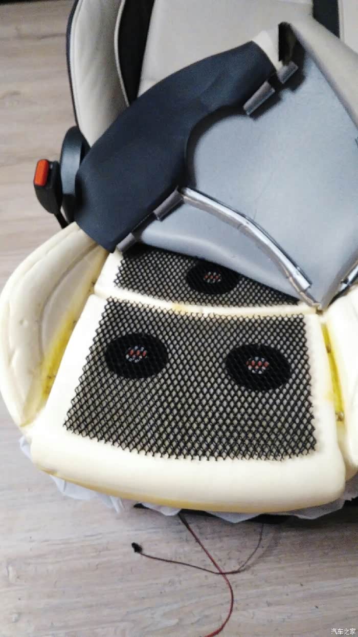 看帖方便,字少。夏天,热,爱出汗,故改通风。钱少,人精明,故自己动手。看图。拆螺钉,费劲座椅已拆走抱回家工具,产品这个也很有用皮子拆开,因只装3风机,卡子尽量少拆固定皮子的卡子,难拆钻孔掏出的海绵钻好风机装好装好导风板恢复安装,用塑料扎带代替金属卡子,易装,够用剩下没用的金属卡子,这里多说几句,拆下它的时候先用尖嘴钳夹住,转动,到两瓣重合处露出来,然后用一字螺刀去捅两瓣中间,捅进去后旋转螺刀,把它撬开,再用尖嘴钳夹出来。这是经验,不然拆起来很费劲。拆靠背皮子,先拆安全气囊线束固定点,在里面从这将穿线管退出背部直接往外翻,使劲背部的固定形式皮子翻起来,侧面安全气囊,不动背部导风板是白色的背部有导...