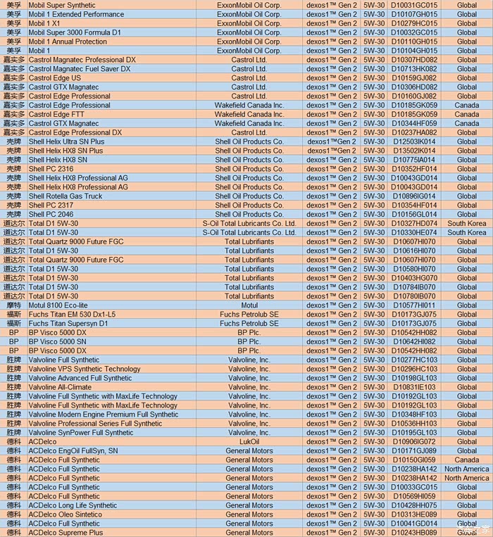 因本人是通用车型,需要加全合成机油5W-30,之前用过金美孚、力魔、安索。现今机油品牌众多,每个品牌宣传都很到位,枪手贴和软文层出不穷,实在难以抉择,故耗费了一些时间从gmdexos官网统计出了部分国内能买到的经过认证的品牌机油供有需求和难以抉择的车友选择(如有遗漏请指出)PS:此贴仅供通用车型车友参考,其他车型不做推荐~~