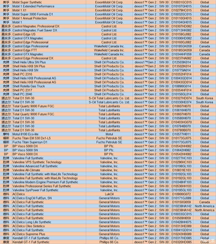 所以全球购美油的5W30,基本都有DEXOS1的认证。