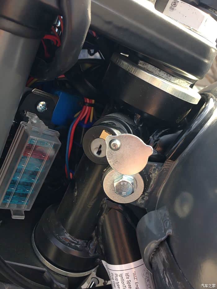 右手把比较有意思,注意到那个橡胶条了吗,骑过摩托的朋友应该知道,这里应该是一个日间/示宽/夜间的开关,为什么变成一个橡胶条。因为欧盟规定摩托车也要有日间行车灯,一般的日系厂商,会在前叉做led亮条,车辆通电就长亮,老毛子解决的办法就简单粗暴了,直接把开关接到夜间模式,开关去掉,橡胶一封,完美解决。深深佩服战斗民族的智慧。
