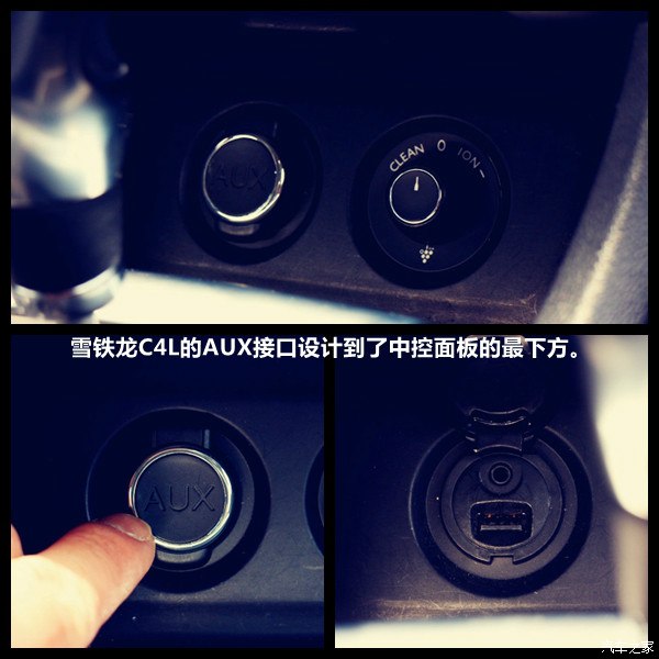 雪铁龙C4L的AUX接口设计到了中控面板的最下方。