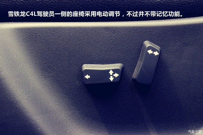 雪铁龙C4L驾驶员一侧的座椅采用电动调节,不过并不带记忆功能。
