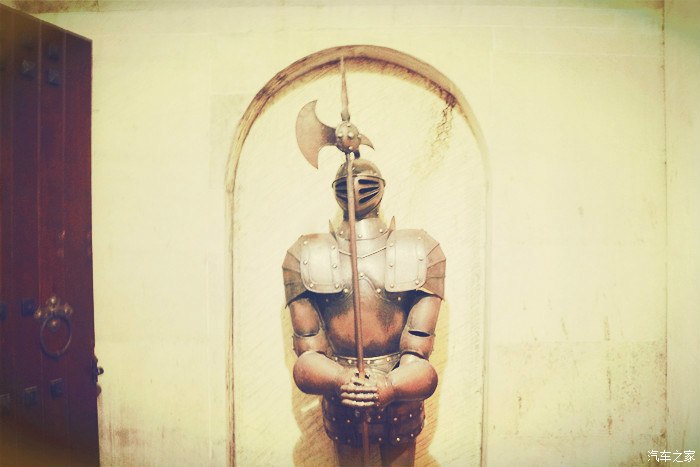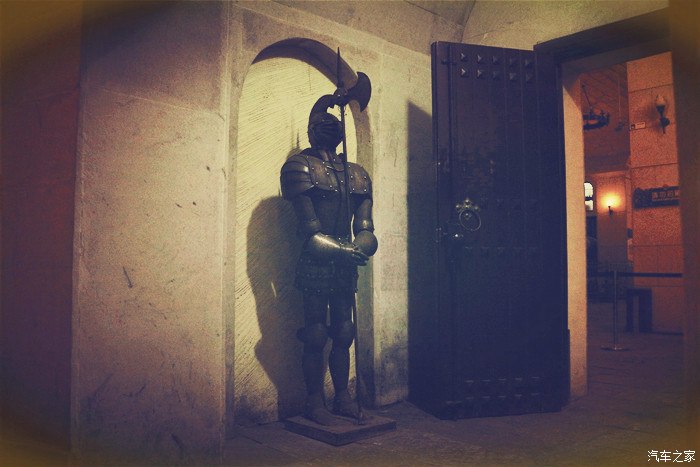 走进地下大酒窖仿佛被置身于中世纪的城堡之内,酒窖门口的盔甲守卫。