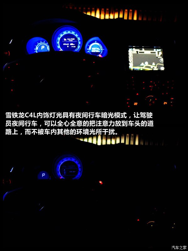 雪铁龙C4L内饰灯光具有夜间行车暗光模式,让驾驶员夜间行车,可以全心全意的把注意力放到车头的道路上,而不被车内其他的环境光所干扰。