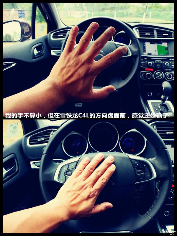 我的手不算小,但在雪铁龙C4L的方向盘面前,感觉还是输了。