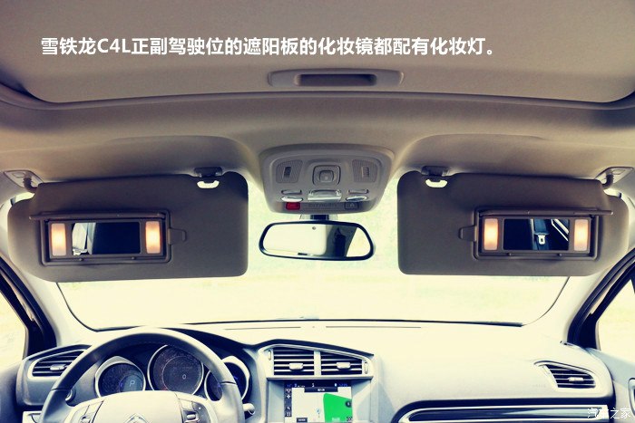 雪铁龙C4L正副驾驶位的遮阳板的化妆镜都配有化妆灯。