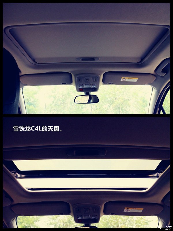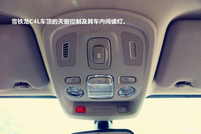雪铁龙C4L车顶的天窗控制及其车内阅读灯。
