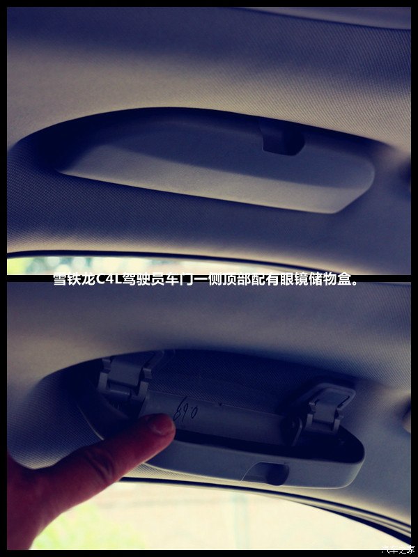 雪铁龙C4L驾驶员车门一侧顶部配有眼镜储物盒。