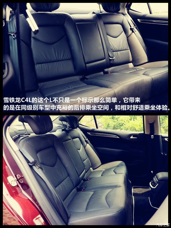 雪铁龙C4L的这个L不只是一个标示那么简单,它带来的是在同级别车型中充裕的后排乘坐空间,和相对舒适乘坐体验。