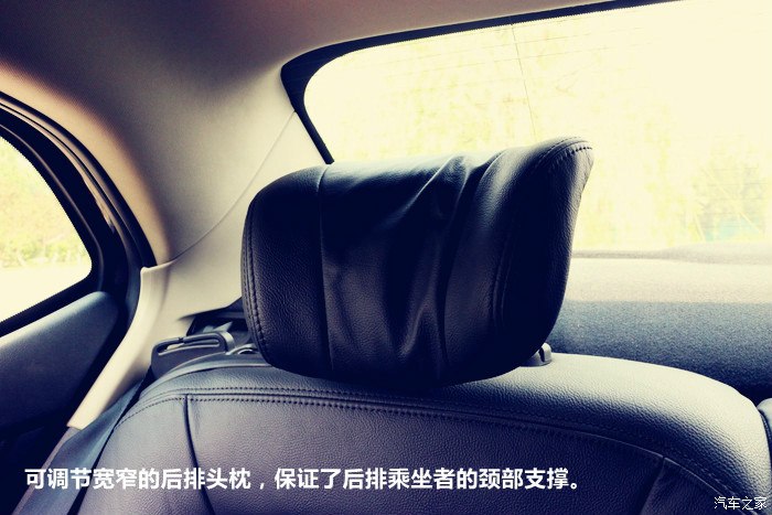 可调节宽窄的后排头枕,保证了后排乘坐者的颈部支撑。
