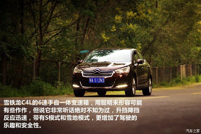 雪铁龙C4L的6速手自一体变速箱,用聪明来形容可能有些作作,但说它非常听话绝对不知为过,升挡降挡反应迅速,带有S模式和雪地模式,更增加了驾驶的乐趣和安全性。