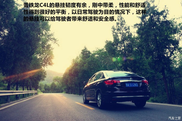 雪铁龙C4L的悬挂韧度有余,刚中带柔,性能和舒适性得到很好的平衡,以日常驾驶为目的情况下,这样的悬挂可以给驾驶者带来舒适和安全感。