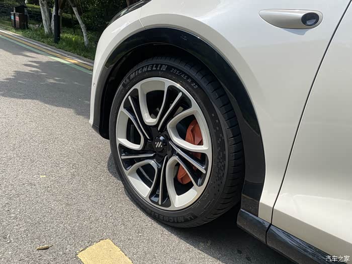 轮毂的样式还蛮个性的有点像花瓣的那种转动起来非常帅气