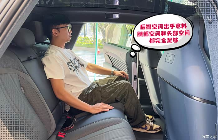 腿部和头部空间大概还有两拳的距离,就这个倾斜的坐姿其实挺舒服的,能够很好地去放松,即使长途旅行也是不错的