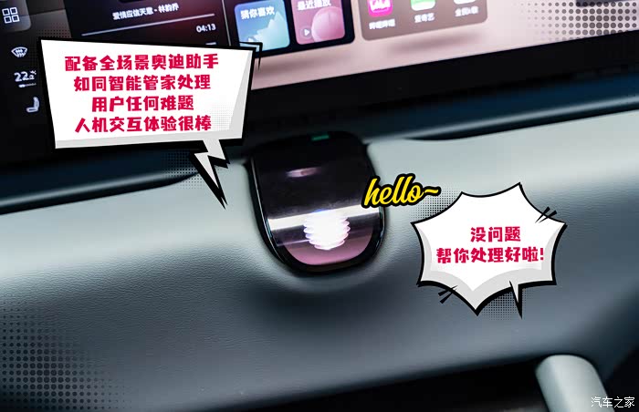 这个奥迪助手确实有点意思,当我唤醒它的时候,它会显示对应的动态图案,而且声音也很立体好听,甚至感觉这个奥迪助手都有点科幻了,而且非常智能,几乎所有的问题都能帮你一一解决,这种人机交互体验很棒