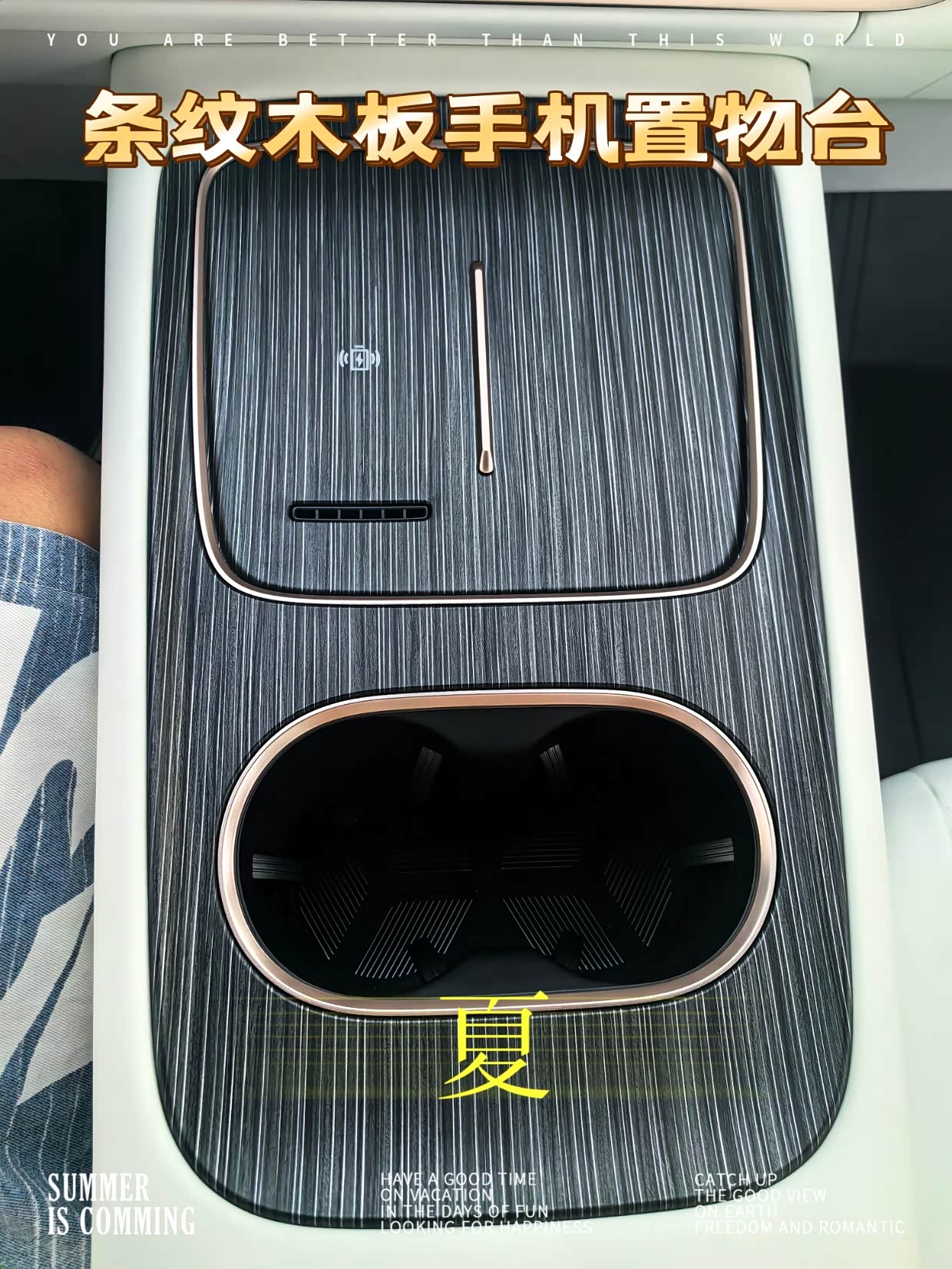 (1)二排三排左侧都配备了充电头,右侧却没有,这也不值几个钱,我感觉真没必要,体验感差了一截,很不方便;(2)门内金属边框有些地方空隙太大,做工方面还是有待提升;(3)副驾前方竟然没有手套箱,确实让经常开车的老司机很不习惯,毕竟如果有,那块儿还是可以放不少东西的,副驾女主人放一些化妆品之类的也很方便,此种设计不知道出于何种考虑。(4)无线快充放手机的的方采用的是光滑木板,车辆高速运动时,可能引起其滑动,不太稳固,我觉得这一点确实考虑的不到位,再次这个密密麻麻的条纹看着也不好看,我有点儿欣赏不来这个审美;