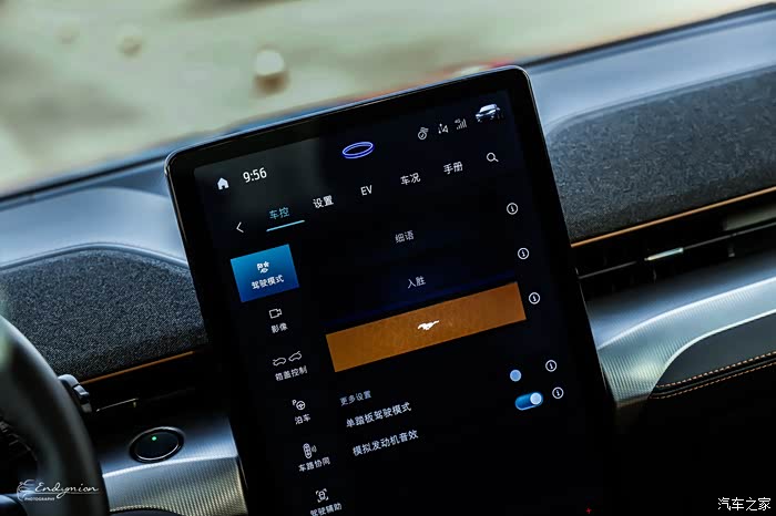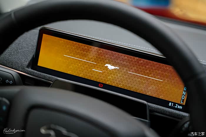 启动键按下之后,两块液晶屏幕的动感画面真的何有仪式感,而且在车外后视镜还有可以动的跑马迎宾灯,让Mustang Mach-E从车外到车内做足了仪式感。