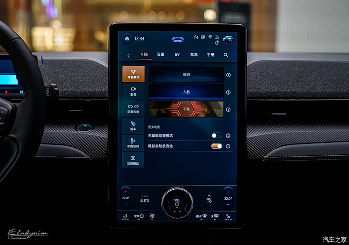 作为一款电动SUV车型,没有了在福特SUV车常见的多路况系统,保留了旋钮换挡。