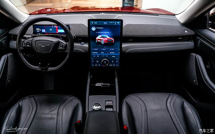 真皮、仿碳纤维、织物,构成了Mustang Mach-E的内饰风格,整体配色还是熟悉的福特风格。不过看上去更加精细了,谁说美系车不够精致呢?