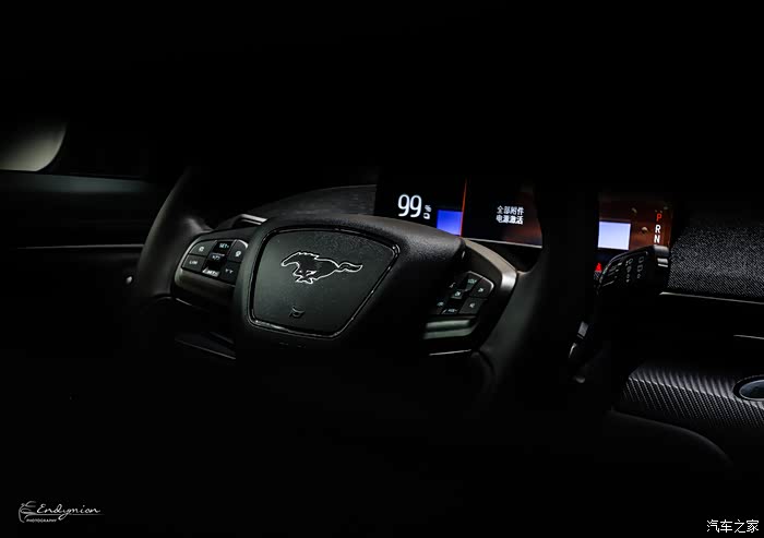 Mustang Mach-E还首次使用了可点亮的奔马徽标,
