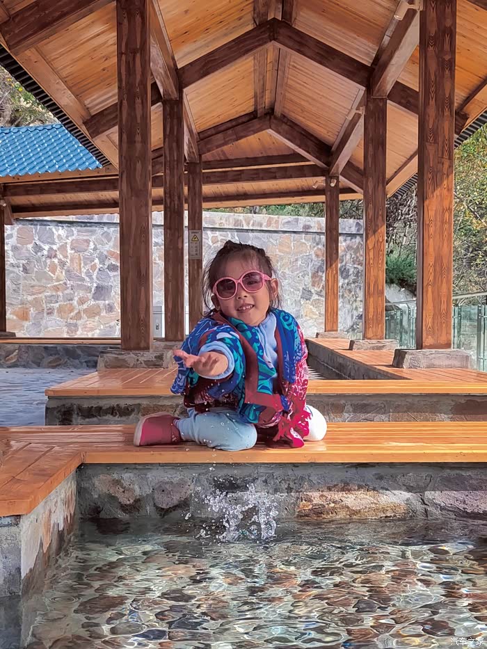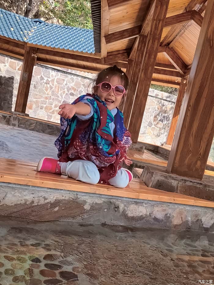这里有供游客洗手的温泉,小宝贝玩的开心不已。