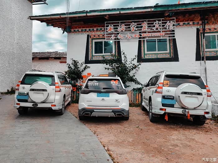 早晨起床给小宝贝拿奶粉冲奶喝,一看“大白”被两个“霸道”包夹了,秒变“小白”了!话说藏族同胞是真有钱!右边的是民宿这家老板的,左边的是游客的。自从进藏看到最多的车可能就是霸道了。
