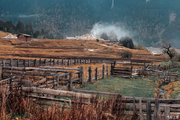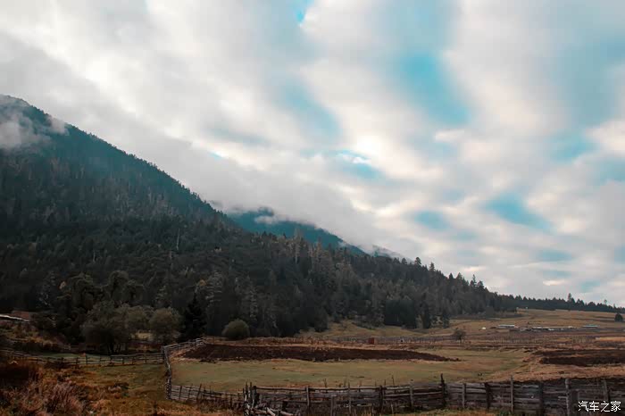 拿完早餐,脸都没洗,赶紧拿相机出来拍几张,藏族田园风光,清晨的云彩,薄雾,破雾的阳光都美极了!