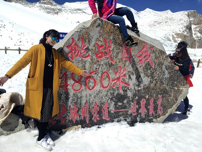 因为两个地方玩的太久,下一站达古湖、情人摊我们直接放弃了,直接坐索道上山,坐上大古冰山4860米的高海拔索道是种怎样的体验,一个字,赞,一到山顶除了激动,还是激动,由于客观环境因素,让我们不得不冷静一下,兴奋的跳跃之后轻度缺氧,就让我们静静拍照