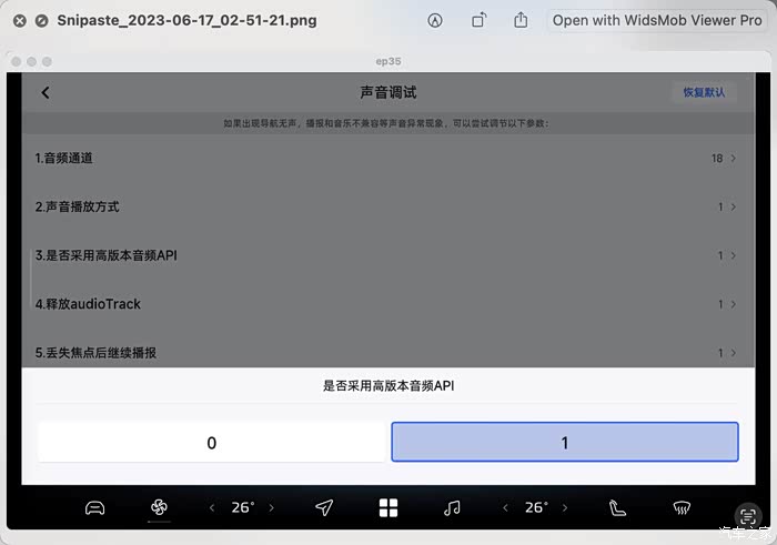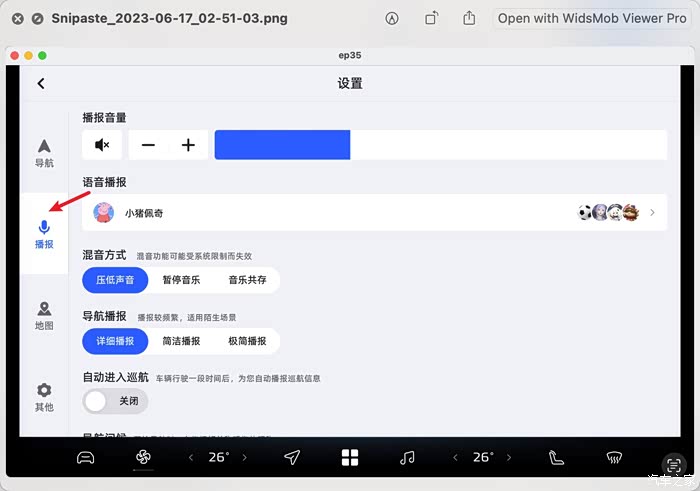 到目前为止你就能使用地图了,但界面看起来太小了,而且没办法从头枕和导航声道发声,跟着以下步骤设置即可解决1. 不断点击播报,点击第3个选项,如图开启高版本音频API