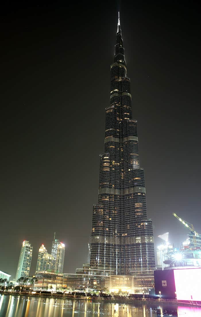 哈利法塔高828米,楼层总数162层,造价15亿美元,大厦本身的修建耗资至少10亿美元,还不包括其内部大型购物中心、湖泊和稍矮的塔楼群的修筑费用。哈利法塔总共使用33万立方米混凝土、6.2万吨强化钢筋,14.2万平方米玻璃。为了修建哈利法塔,共调用了大约4000名工人和100台起重机,把混凝土垂直泵上逾606米的地方,打破上海环球金融中心大厦建造时的492米纪录。大厦内设有56部升降机,速度最高达17.4米/秒,另外还有双层的观光升降机,每次最多可载42人。哈利法塔始建于2004年,当地时间2010年1月4日晚,迪拜酋长穆罕默德·本·拉希德·阿勒马克图姆揭开被称为“世界第一高楼”的“迪拜塔”纪念碑上的帷幕,宣告这座建筑正式落成,并将其更名为“哈利法塔”。