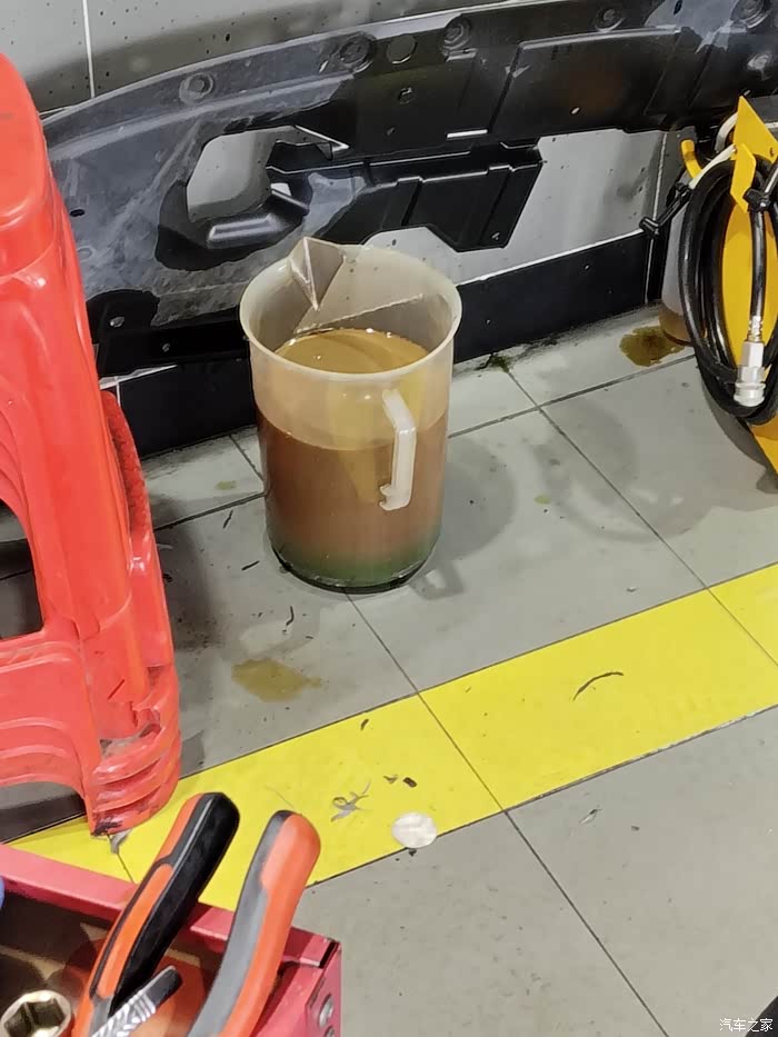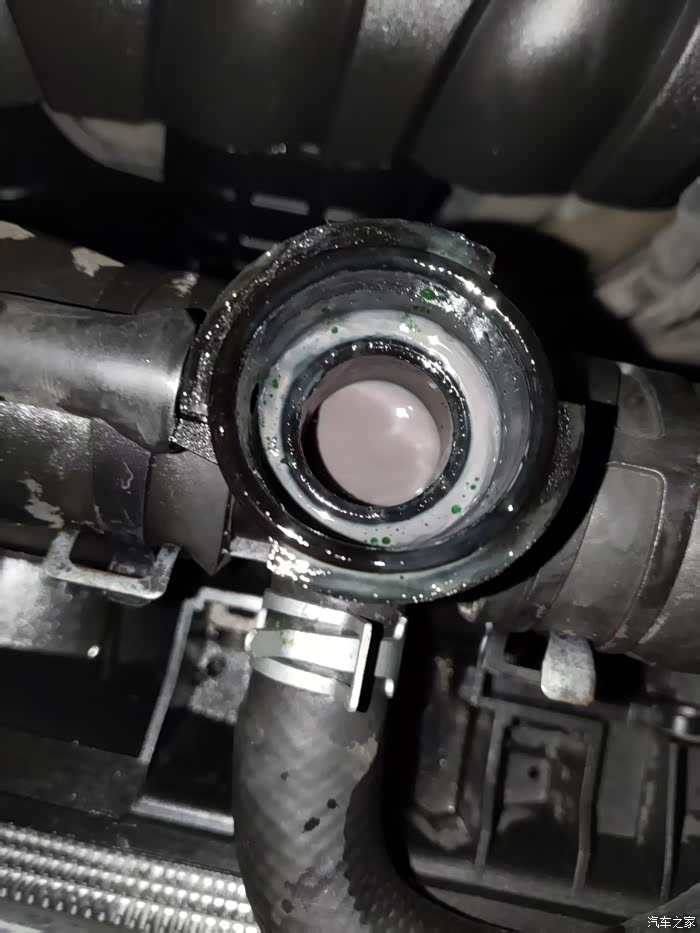 打开水箱盖发现冷却液变成灰色的,浓稠黏黏的