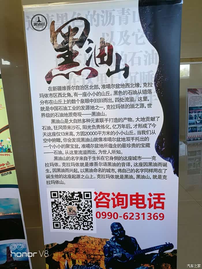 清晨起床,我们吃了点早餐,开始去看黑油山。昨天,在魔鬼城的游客中心看到这个广告,很有吸引力,不去看看怪遗憾的。