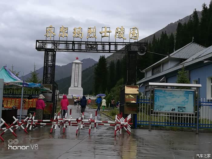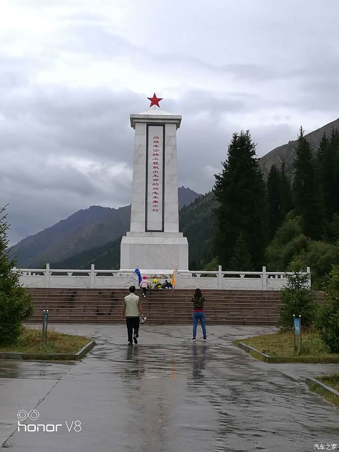 下午五点钟,我们到了乔尔玛烈士陵园,冒雨进去,为修建独库公路牺牲的168位指战员敬献临时采摘的鲜花。在墓碑前,面对着168位英灵,当年新兵现在老兵的我尽情的大喊一声“敬礼”,同时举起右手敬一个多年未曾的标准军礼,以表达心中崇高的敬意。这时,我听到很多手机的咔嚓声,但愿这声音没有惊扰墓穴中安息的烈士。