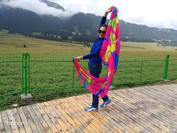 说着说着,从他们车后座位置下来一位约50岁,显得非常年轻漂亮的女士以及我的老伴都加入了我们的聊天。原来,后来下车的是一对夫妻,男士姓牛,妻子与刚刚开车的何氏司机是亲戚,他们从郑州飞机到乌鲁木齐,然后借在此工作朋友的车来看看天山之美。