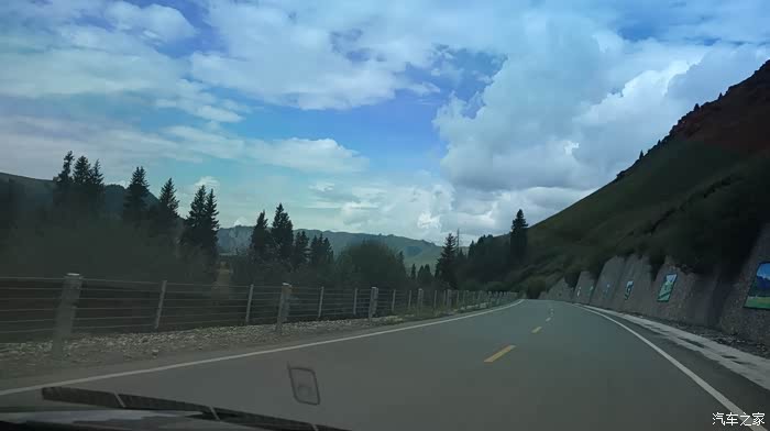 导航很顺利的把我们领到了独库公路入口,拍照、录像留作纪念(奇怪,照片和录像都没有找到)。8:30分,我、老伴和爱车开始了穿越独库公路之旅。