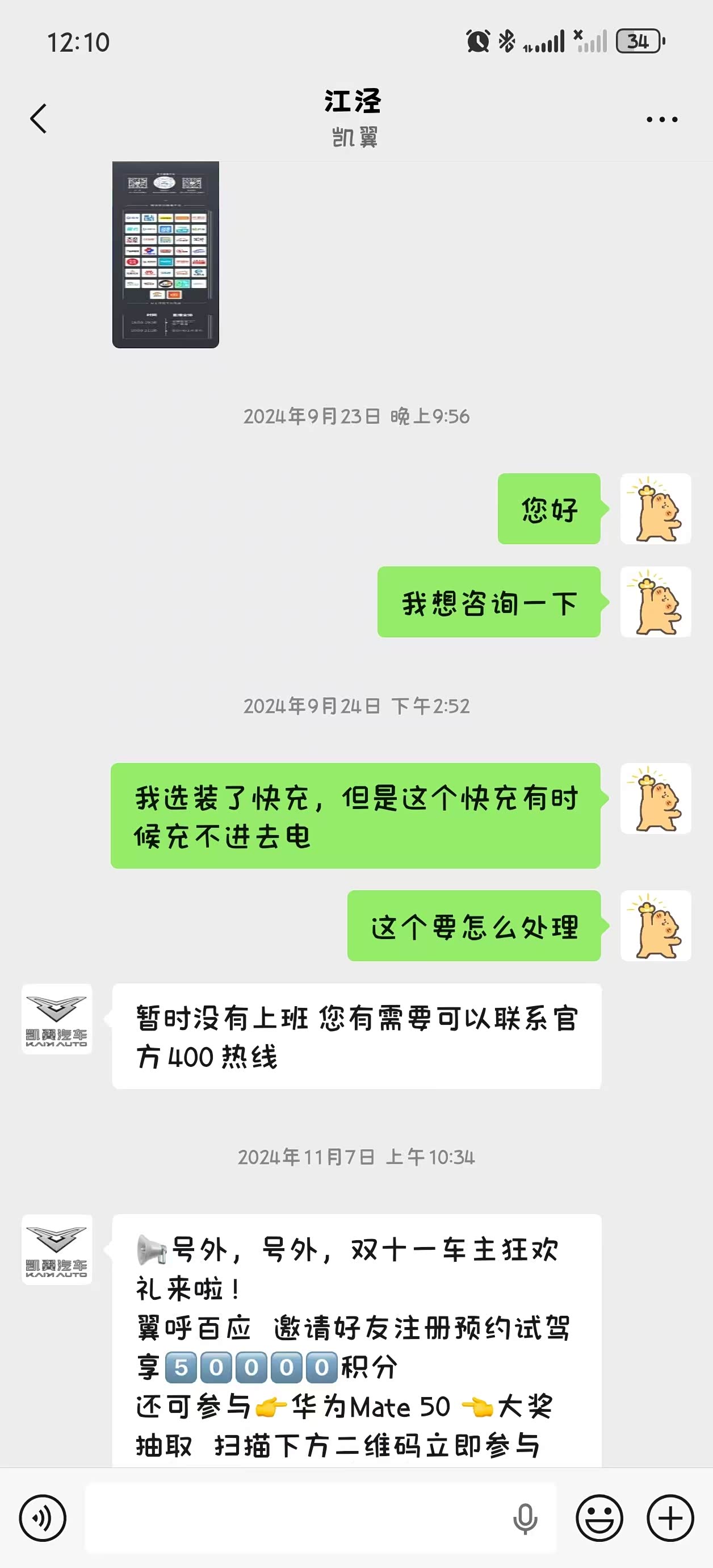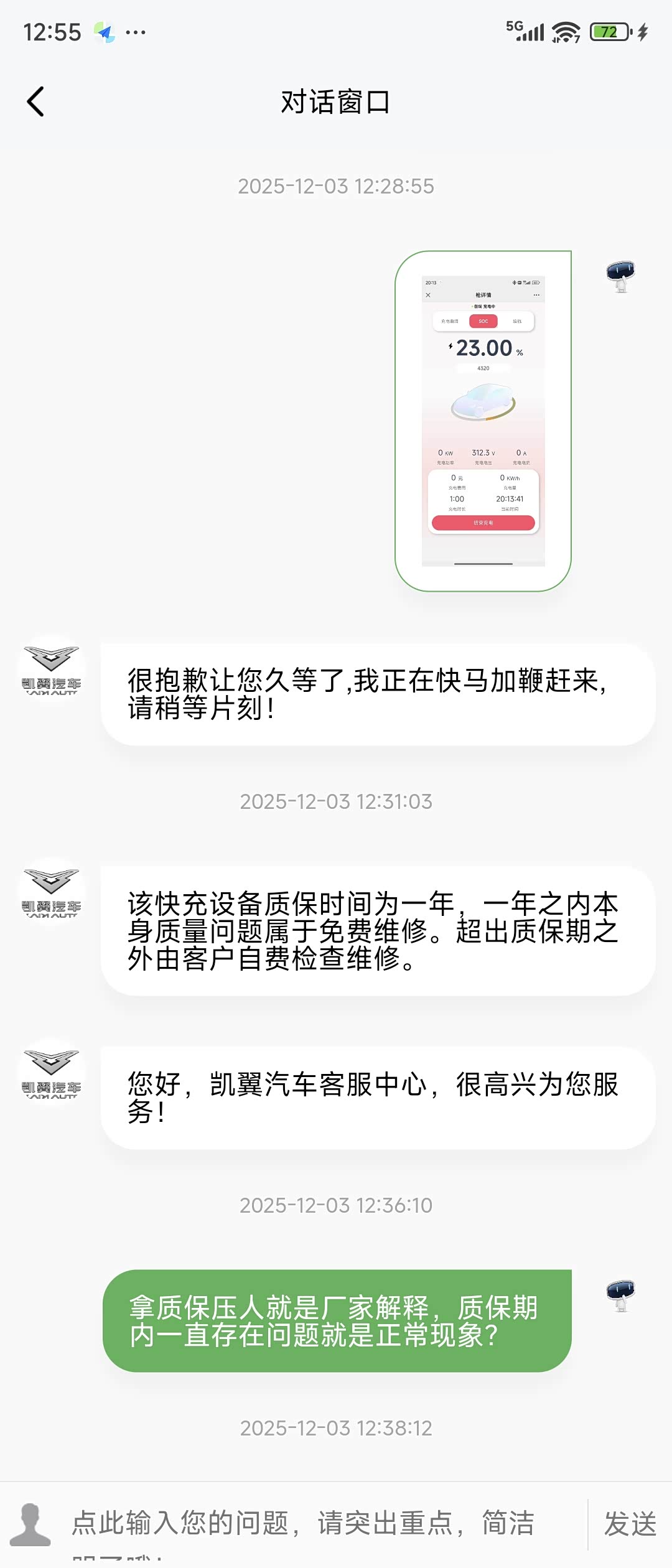 2024年6月28日、2024年7月14日、2024年9月24日多次出现无法进行快充充电问题,前往服务站进行维修。