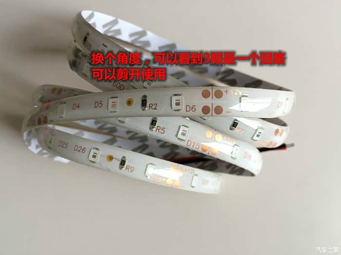 每段12颗灯珠,每段功率0.96瓦,准备做前排和后排的氛围灯,全车氛围灯功率3.84瓦,够节能了。