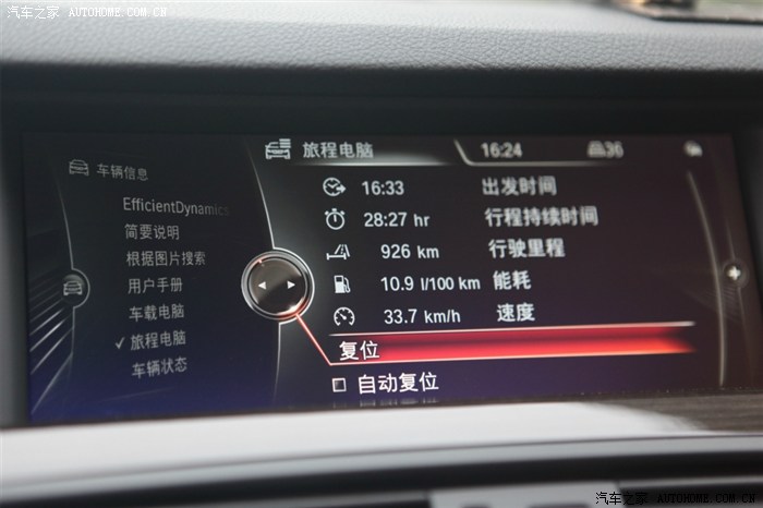 楼主车的旅程电脑,这里显示的还算高了,综合起来是10.5左右的样子,高速和市区驾驶时间差不多,油耗很满意。