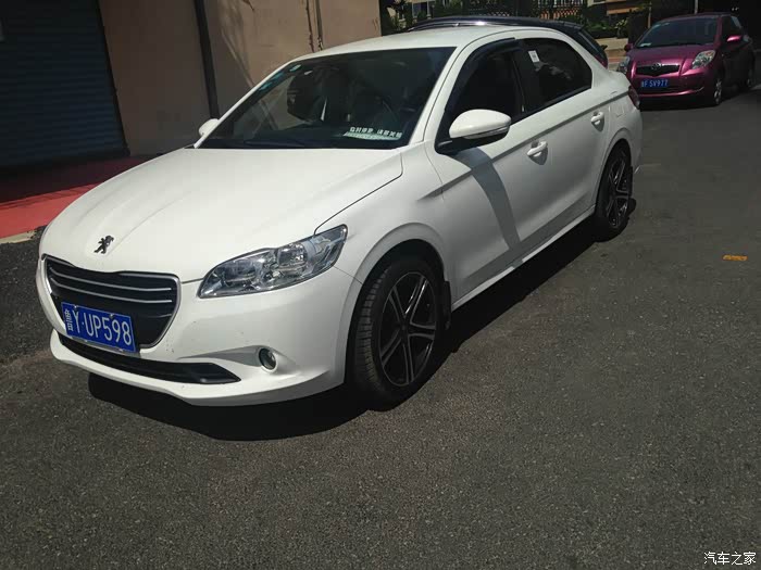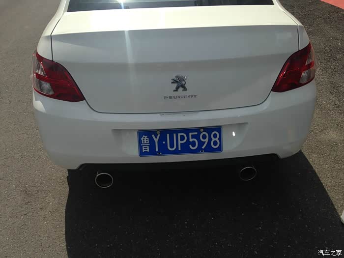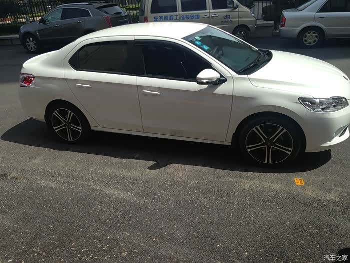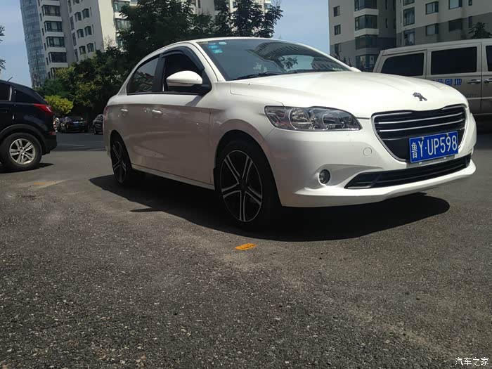 在去年9月份,和家里说要买车,我爸妈也很同意,然后我就去车展看了一圈,结合经济实力,当时感觉雪铁龙新爱丽舍很好,但是逛了好多家,没有现车,然后无意间进了陆通标志,进去看了一下301,问了一下价格,有没有现车,在网上了解了一下,就回家了,和家里人一说,第二天就果断拿钱去提车了,价格没有优惠多少,74500,买贵了,好多朋友67000,就拿下了,也无所谓,车都提了,哈朋友们你们不管买谁家的车,一定要多打听一下价格,和他们讲价,不要像我这么痛快,个人开车比较澎湃,转速高,980公里就上高速了 ,这个车噪音太大,轮胎太窄,安全性低,不够稳,油耗在9.1,我崩溃了,后来3000公里昨晚首保,也就降下来了,现在一直7.6.排气一开始是内会压。现在是双排M鼓,把中间消音器割掉了,声音比较闷骚,因为我媳妇在外面上学,一个周要一次高速,果断换掉轮胎,17寸5幅轮毂,和马牌215-45-17寸轮胎 ,瞬间高大上,安全 舒适,稳定,帅气,不说了直接上图