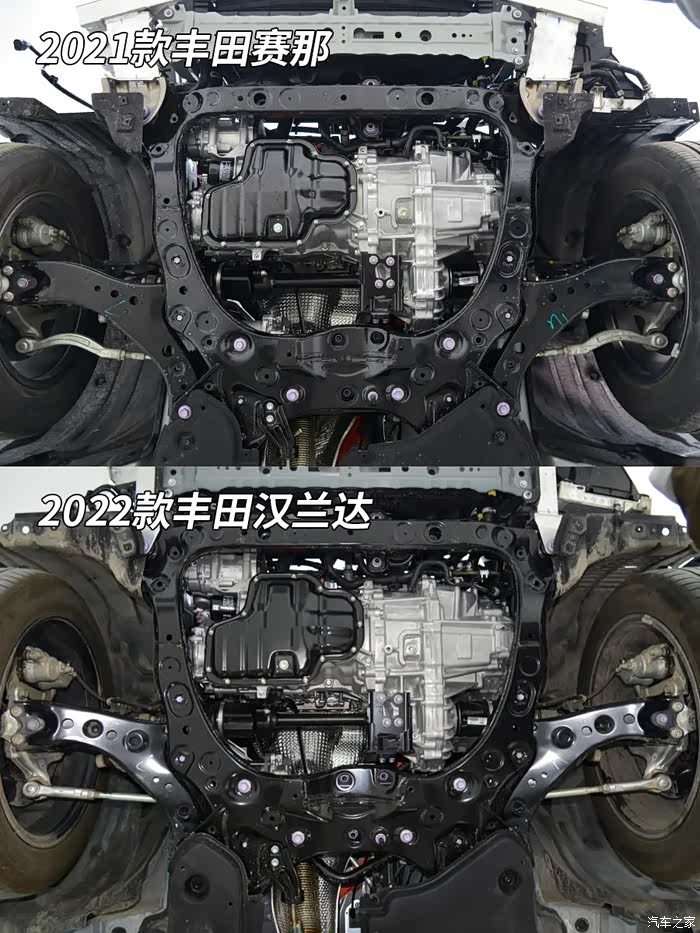 后副车架同样是全框式结构,和汉兰达相比,后副车架和后悬也几乎一模一样。