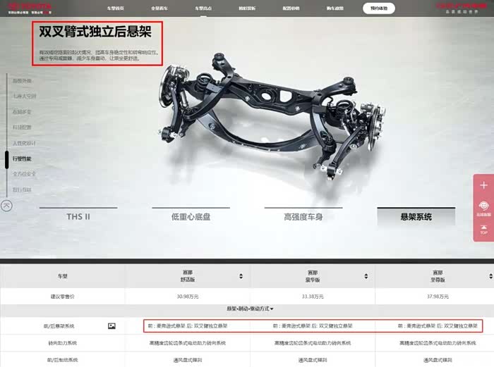 但丰田赛那的官网上竟然称为“双叉臂式独立后悬架”。究竟是厂家对“双叉臂”这三个字有什么误解,还是我们孤陋寡闻了?