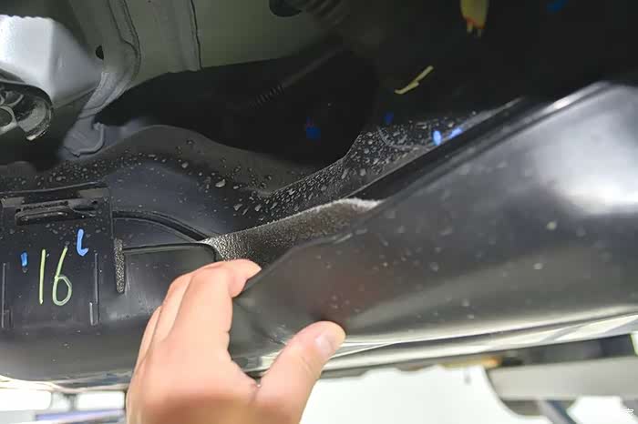 油箱的隔热做得很完整,并且还安装了一块塑料护板,内部还有发泡海绵填充,形成很好的缓冲效果。