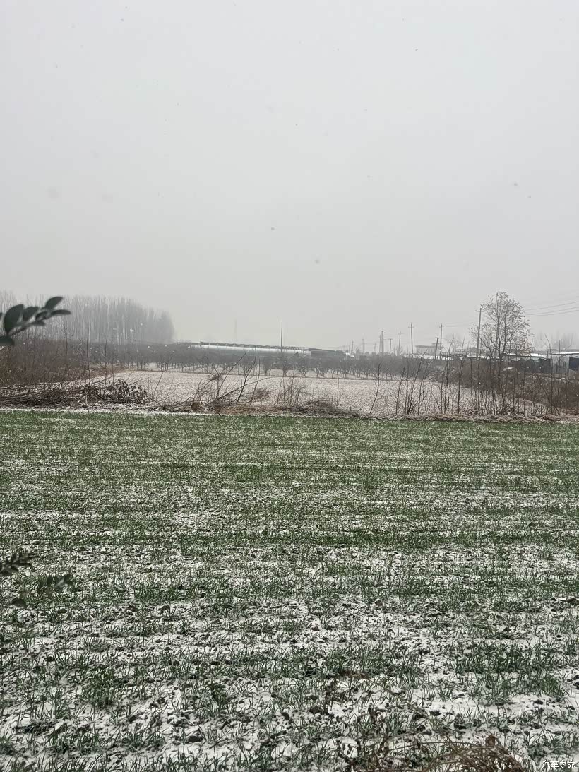 车窗外是我们河南的麦田,乡村的冬日图景,麦田盖上了薄薄的雪绒,路边的杨树枝桠光秃秃的,雪粒子落在上面簌簌作响。