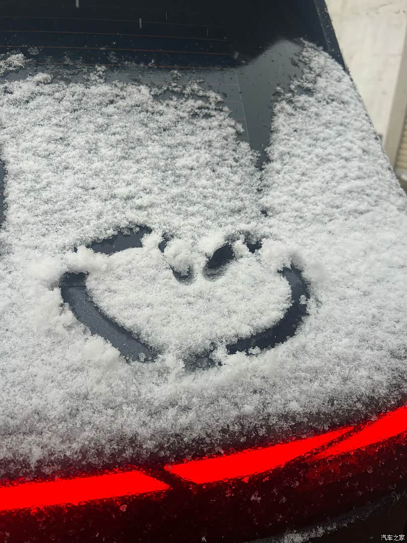 往下翻,是等孩子时随手拍的画面。我用手指在启辰VX6后门的雪层上画了个歪歪扭扭的笑脸,对着这团雪拍了张特写,心里想着孩子看到时会笑出声的模样;